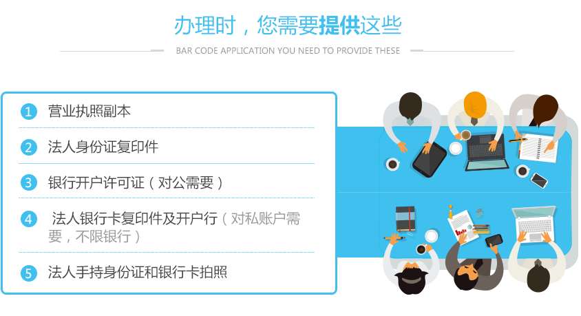 e、法人结算银行卡正、反面(各1)备注开户行信息;
